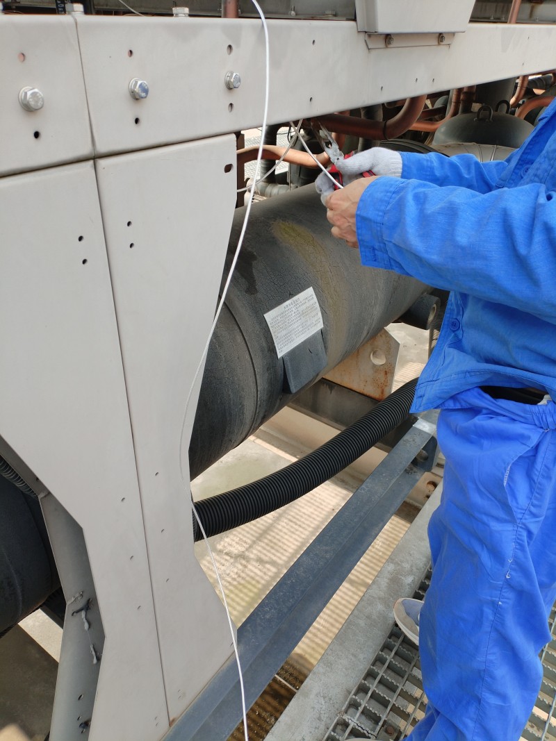 (1)室外主機冷凝器的清洗,于夏季開機前進行,每臺每年一次。同時,對主機冷媒管路和止回閥進行撿漏、緊固及調整。